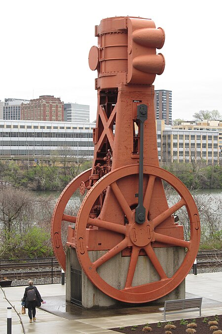 This is a giant blowing engine that sits on the South Shore of the Monongahela River in Pittsburgh. It is 4 stories tall - see that puny human next to it? This engine did real work in a steel mill, blowing air into the blast furnace that kept the extremely hot fires working. Now it's useless, but it looks pretty cool, and a coat of paint on it turns it into a unique work of art. Pittsburgh is proud of their steel heritage, and they use relics to symbolize their gratitude.